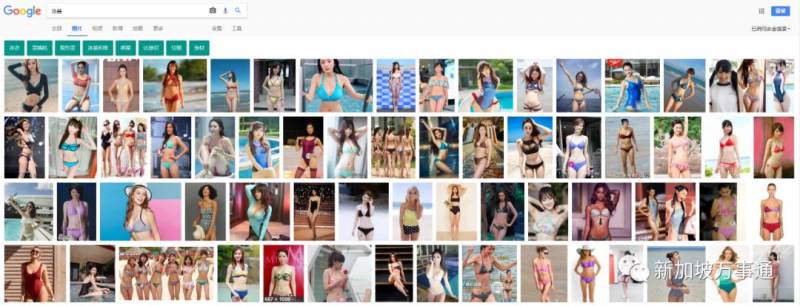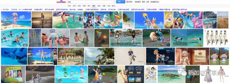 接着,万事通又搜索了“泳装”一词,在Google上显示的是真正的泳装图,但是在百度上显示的竟然是卡通人物形象……