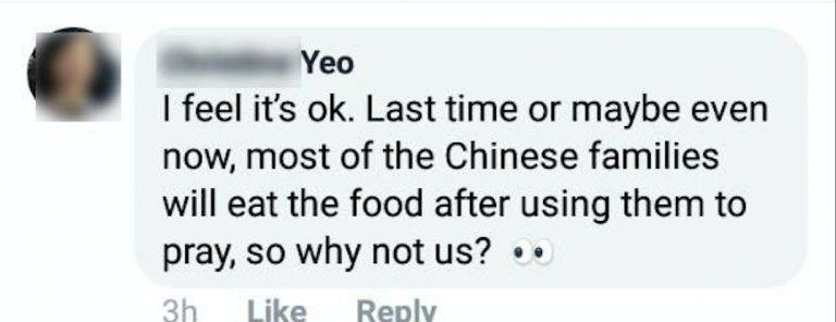 也有网友说,大多数华人家庭在拜祭亡魂后都会食用供奉食品,所以其他人也同样可以食用。