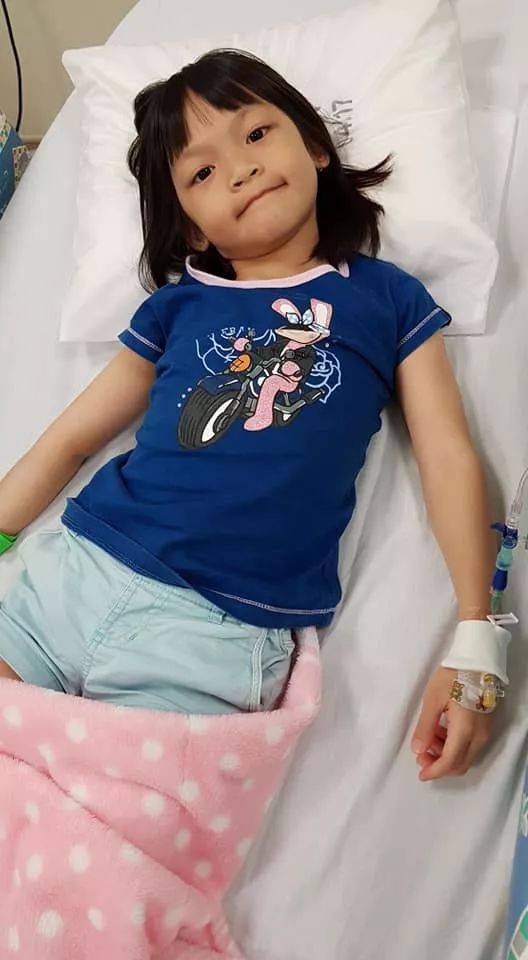 上星期开始,她已经开始了她的第一段治疗…希望药物会对她的病症有帮助。她是个勇敢的小孩,扎了无数次的针都没有哭,除了有一次一个医生把她扎痛了,她才哭了!希望大家为她打气,谢谢大家!”