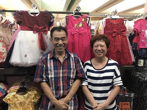 高秀华(右)与丈夫一同经营儿童服饰店。