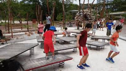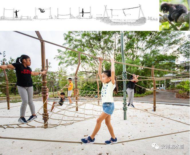 野趣乐园,是孩子们模仿湿地生物滑翔、跳跃的地方。让年龄介于5至12岁的儿童能够在这些游乐园林中探索自然生态,边玩耍边学习。