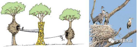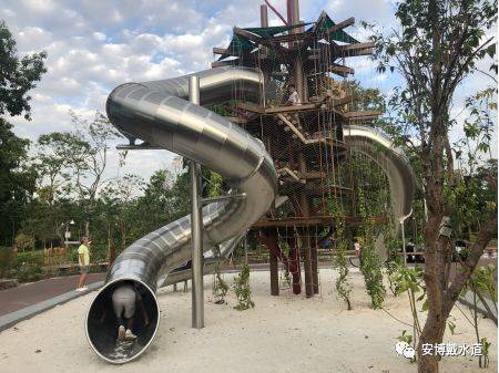 除了承重的钢结构,乐园大部分的取材都是更为自然的石块和木材。它们有的摆放成溪涧落石和枯木的样子,仿佛是水獭在其间工作;有的垒成鸟窝的形状,仿佛是幼鸟在等待归巢的父母。考虑到热带白蚁的危害和杀虫剂的毒性,所有有原木的区域,地基四周都由细密的铁纱包围。既无毒害,又能防止白蚁的钻入,保障了乐园的安全。