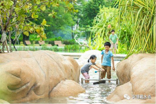 潮水湾通过循环生态净化,将回收水净化回游泳池水的标准,供孩子们嬉水。相较于使用常规的硫酸铜、消毒粉、净水剂进行水质净化消毒,生态净化群落不会对周边自然水体的造成化学污染,不会对孩子们的皮肤造成刺激,它与周边的自然环境融为一体,让人们意识到大自然的惊人净化能力。