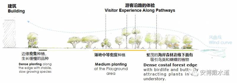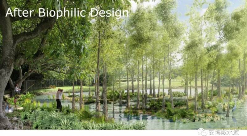 湖畔花园的设计以生物友好型(Biophilic Design)设计*为原则,关注自然界层面,强调整体环境或栖息地。连接我们与自然的内在需求,增强人们对环境和场所的情感依恋,用一种深刻而基本的方式来保护自然。(生物友好型设计(Biophilic Design)概念见文末)。