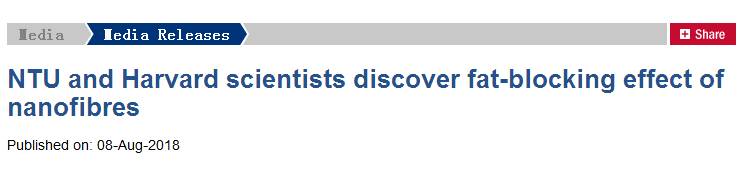 近日,南洋理工大学(NTU)官方宣布——NTU和哈佛科学家一起发现了“纳米纤维的脂肪阻塞作用”。