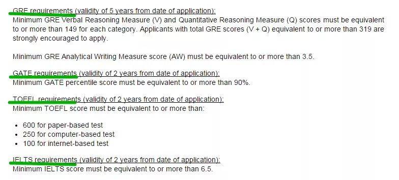 3、所有海外大学的申请者都必须提供GRE和托福成绩。 来自印度的申请人可以使用GATE取代GRE,雅思可用于代替托福。
