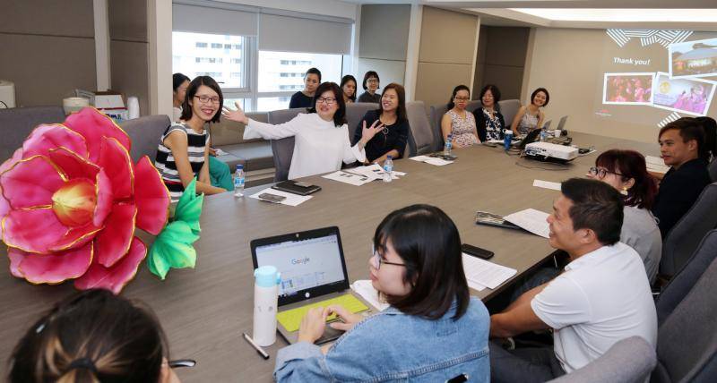 华文媒体集团营运总编辑罗文燕(左起)、新加坡滨海湾花园节目策划资深处长王翠玲与国家艺术理事会副司长(传统艺术拓展)郭茵茵,在滨海湾花园中秋节庆祝会记者会上介绍今年的亮点。(梁麒麟摄)