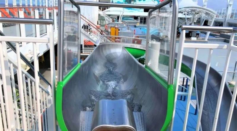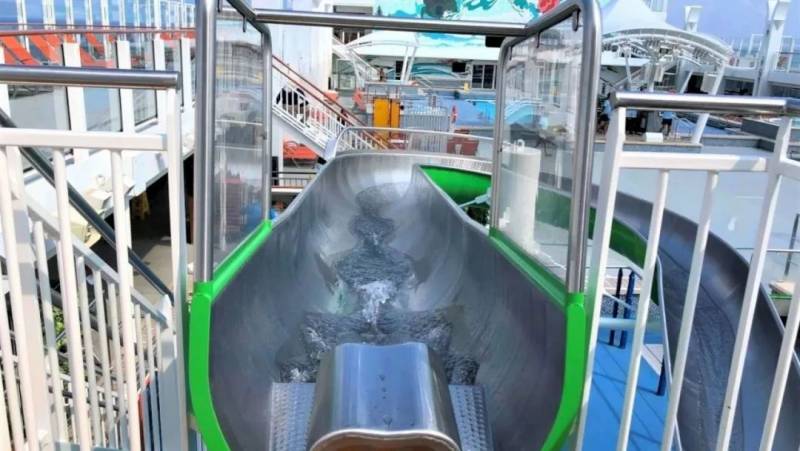 说到玩怎么能少得了水上滑梯!!万万没想到邮轮上也能建滑梯!星梦邮轮上一共有6条滑梯,5条是成人的,在20楼船尾;一条是儿童的,在16楼船尾。