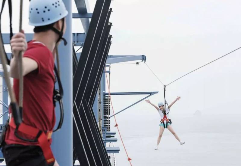 在海洋上空玩水上滑梯真是个神奇的体验,边看着大海边极速滑落,兼具快感和刺激,问你怕未!
