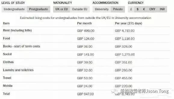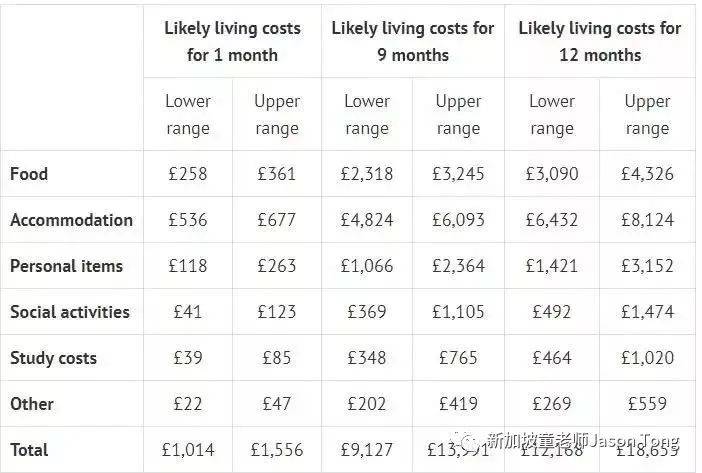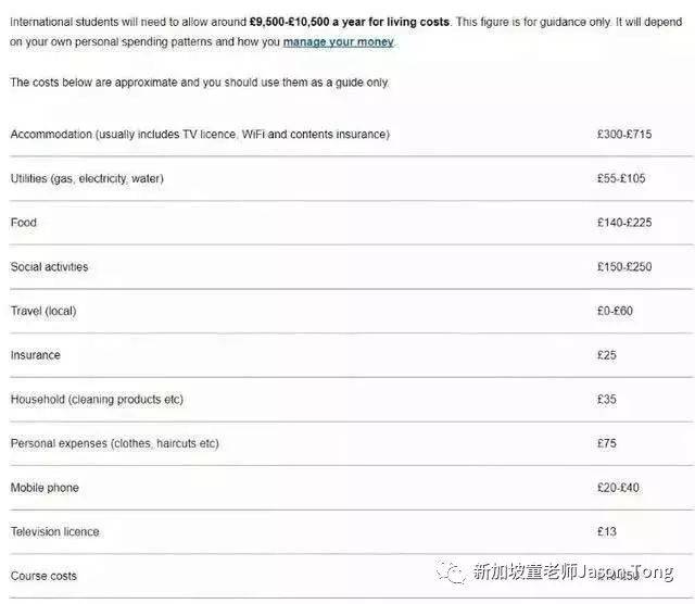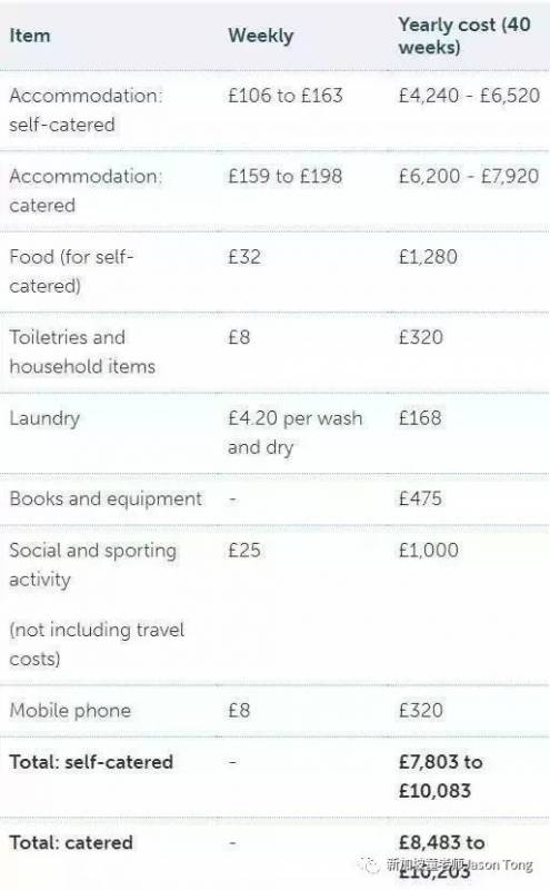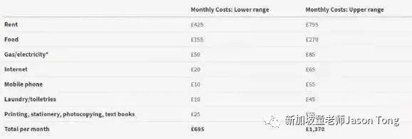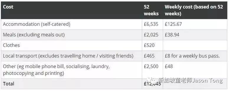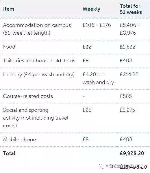 新加坡留学贵吗?让我们先来看看英国各地和学校的留学成本吧。据官方数据显示,在英格兰地区(除伦敦之外)的学生,年均生活费是£12,056,大部分学生一个月至少需要花£150在日用品和食物上。
