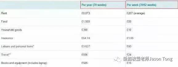 而研究生的花销预算为£9,928-13,498/年。