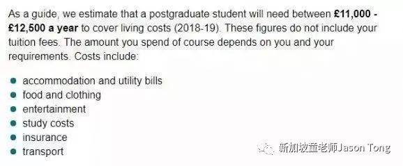 对研究生花销建议是£11000-12500/年