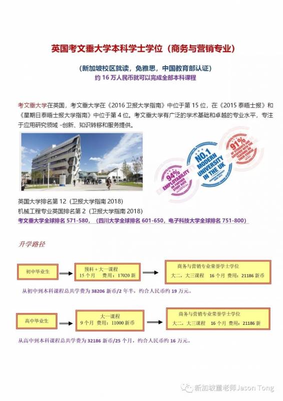 相比之下,作为同为英联邦国家之一的新加坡,不少学院也与英国大学合作,且文凭及含金量与本校一模一样!!!但是无论是生活成本还是学费都便宜很多。童老师给许多学生家长算过,在新加坡四年的本科学费也只有20万人民币略多,而一年的硕士仅需要10万多人民币!而相比之下,欧美国家的留学可以硕士高几倍!!