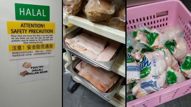 网上流传的一段视频显示,一间疑似职总平价超市的回教食品认证冷藏室内竟然存放猪肉,引起网民热议。职总平价证实,这起事件发生在义顺纳福城(Northpoint City)的平价超市,并强调所有放置在该冷藏室的家禽已被扔弃。