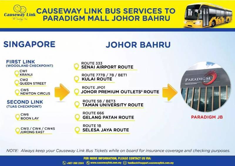而CW6、CW3 、CW4、CW4S,是从新加坡的大士关卡离开,但只有CW3直达新山的武吉英达(Bukit Indah),票价约4新元。