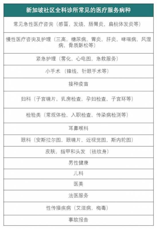 政府除了对公立机构和私立机构服务人群的合理规划和有序划分外,其在服务项目上也充分体现开放性。例如社区全科诊所可以提供各项疫苗服务,出入境体检服务,法医服务等也为社区全科诊所提供了更广泛的创收机遇。