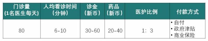 表3 :常见新加坡社区全科诊所的模型。注1:新币兑人民币 = 1:5; 注2:1:3 为1名医生+门诊经理+配药+收银。