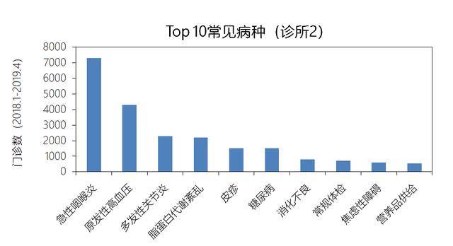 图2:年度前10常见病种的门诊量汇总(典范诊所2)。