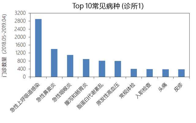 图1:年度前10常见病种的门诊量汇总(典范诊所1)。