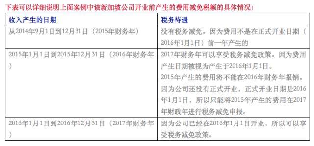 在新加坡公司营业前的开销是如何获得税收减免的。