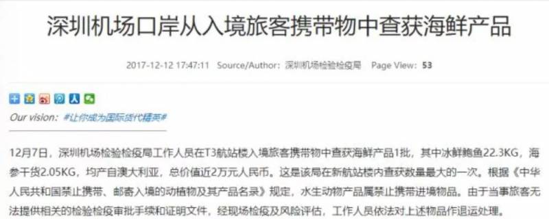 就像去年12月,一位从澳洲回国的游客带着价值2万元的冰鲜鲍鱼和海参,在经过海关时被全被查获没收!