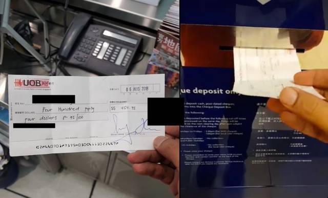 短短的几句话,这名员工告诉失主不用担心,因为支票已经被放在UOB的存款箱当中,他还拍下照片作证。
