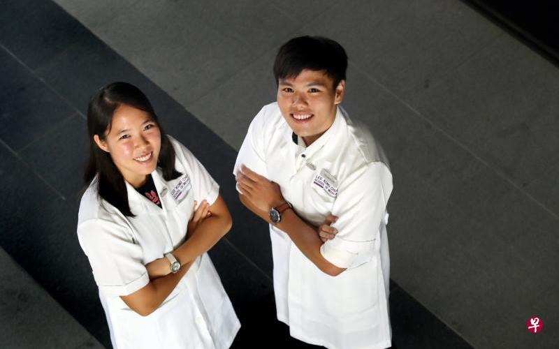 我国羽毛球女将蔡惠珍(左)和20岁男生梁文哲是今年南洋理工大学李光前医学院的新生。(陈来福摄)