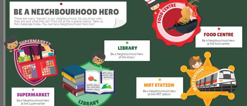 小朋友可以扮演地铁站、超级市场、图书馆和熟食中心的工作人员,并学习以华语指引有需要的年长者。