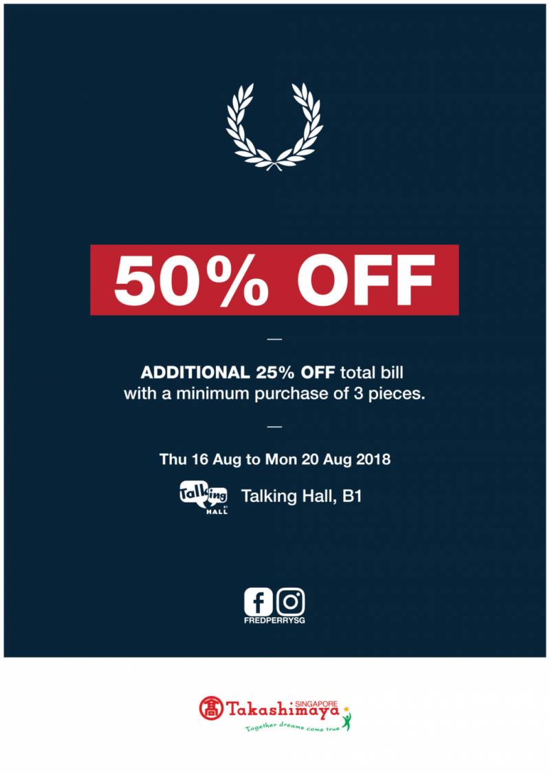 3.Takashimaya Fred Perry五折特卖,买三件还有额外75折
