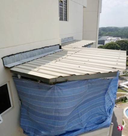 (新加坡讯)公寓女居民申述8户邻居在阳台加建锌板遮雨棚,不仅遮蔽美景还会积鸟粪,影响外观,直呼如同“贫民窟”一般。