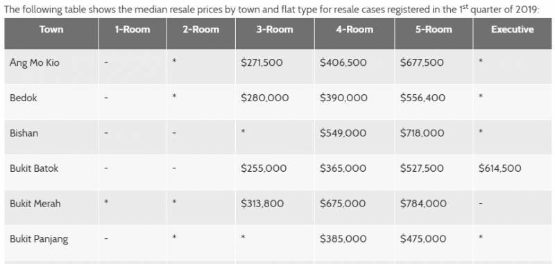 资料来源:新加坡建屋局,2019年第一季度房价中位数
