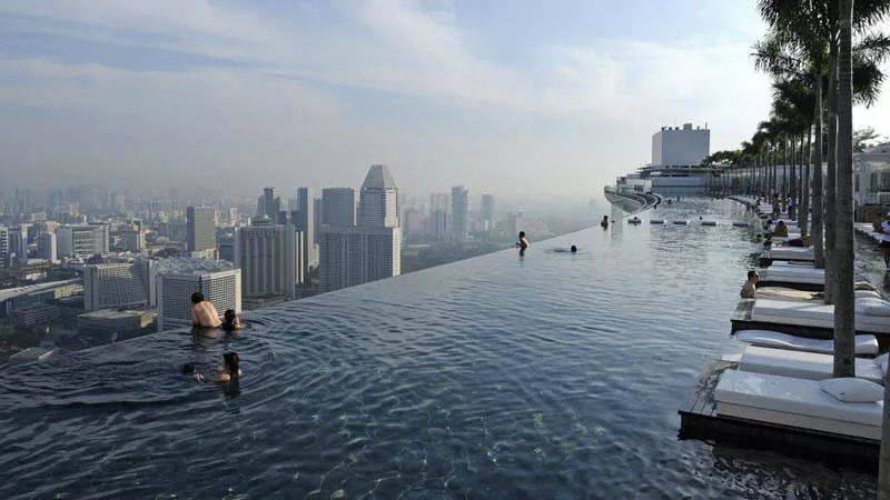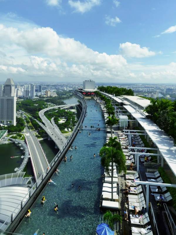 金沙酒店不仅是以色列裔建筑师莫什·萨夫迪(Moshe Safdie)的代表作,建成后也一直是新加坡的地标性建筑,受欢迎程度常年居高不下。金沙酒店由三座塔楼组成,外观宛若帆船,极富动态感。三座55层高的酒店大楼共有2600多间客房,立面的玻璃幕墙设计开拓了景观视野。顶楼是一个宽敞的公共平台,有花园、餐厅、和“无边界”的泳池,还包含一个长达66.5米的观景台。