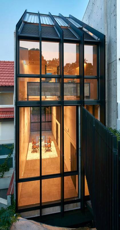 新加坡本土建筑事务所WOW将其多年前购买的一处房产改造成为面向公众开放的艺术与设计展陈空间:恢复了建筑原有的内部结构,保留了未完成的表面,露出坚固的砖砌结构和赤陶土屋顶瓦片的底面。建筑师还在原房产后面增建了一栋更高的楼,使用裸露的混凝土和玻璃作为主要材料。