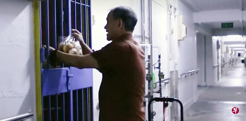 画面中,他不但沿家分面包给邻居吃,也会留意在组屋楼下的其他长者,确保他们也会拿到面包。