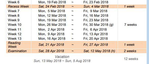广告栗子又来了,比如新加坡国立大学2018年的假期:
