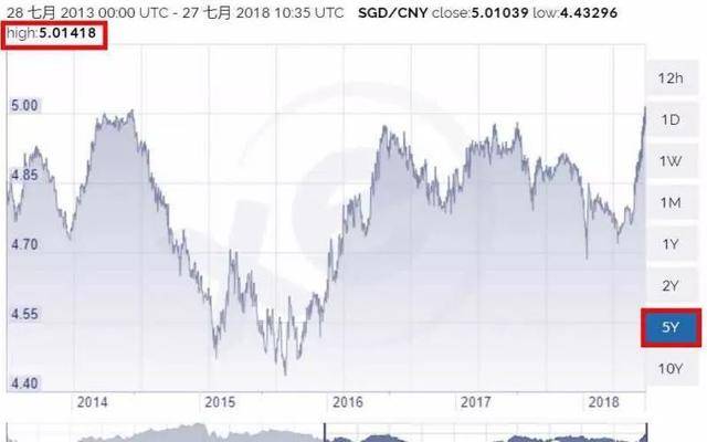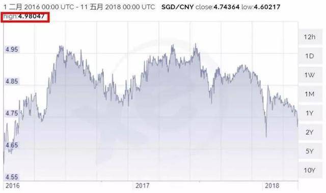 要知道,在过去的2016年、2017以及2018年上半年这两年半的时间里,新币兑人民币的汇率从来没破5,最高也就是4.98。也就是说现在汇率是近5年以来最高点了!