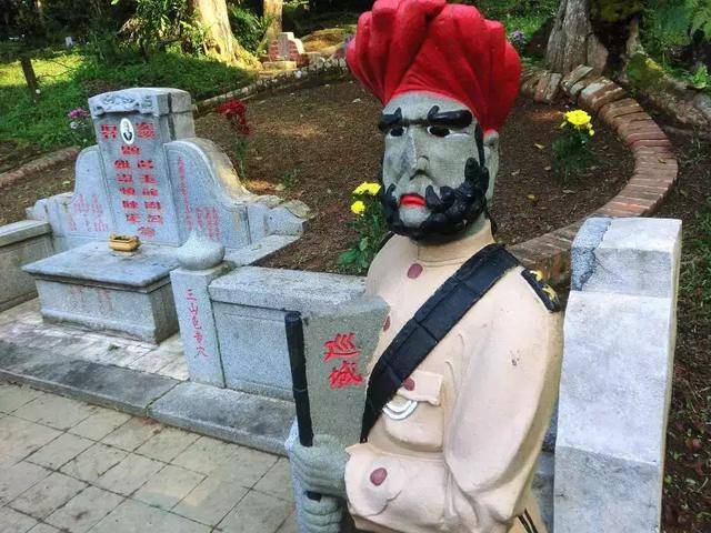 Bukit Brown 的华人旧墓旁边,站着印度守墓人。