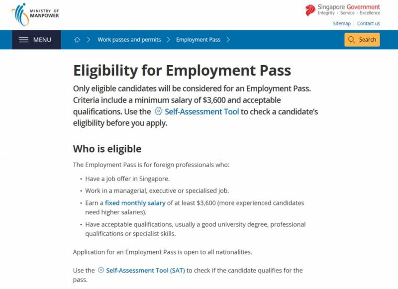 根据新加坡人力部的网站,申请EP的最低标准是$3600的薪水,以及需要大学文凭,或相关专业学历。