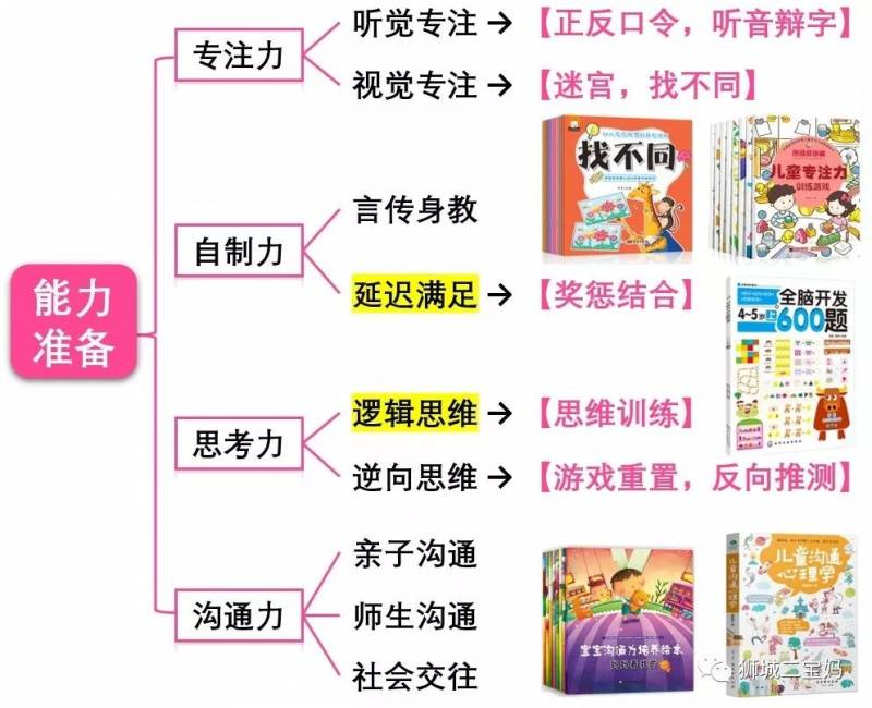 2) 广集思:广泛涉猎市面上相关题材的育儿书,幼小衔接指导手册等。