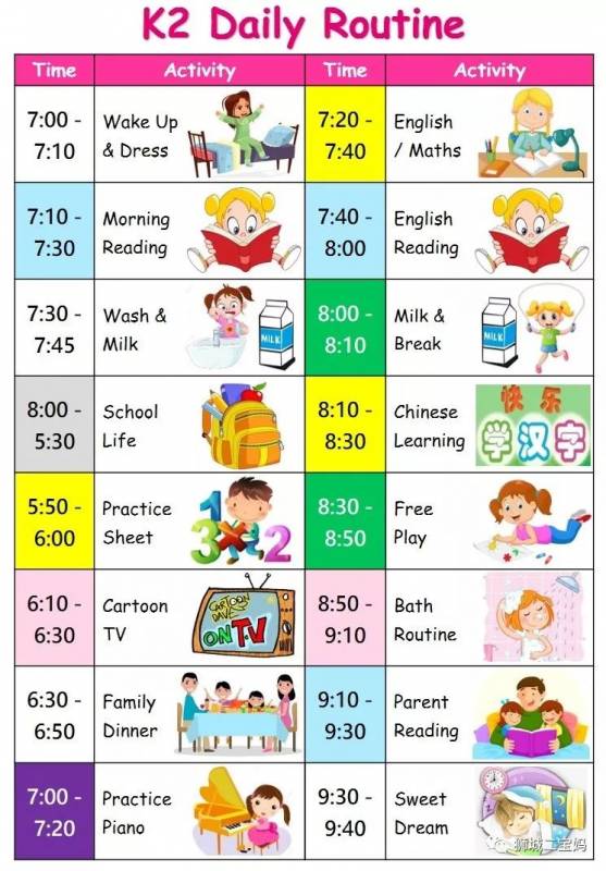 幼儿园是相对自由,宽松和包容的环境,小学则有很多规则,呈现一定的秩序化。推荐用直观的卡通图表,帮孩子认识和理解规则。