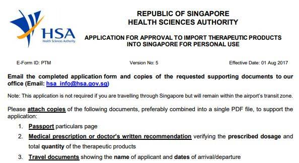 – 医生处方或书面建议的副本,需核实携带入境新加坡的药物剂量和总数