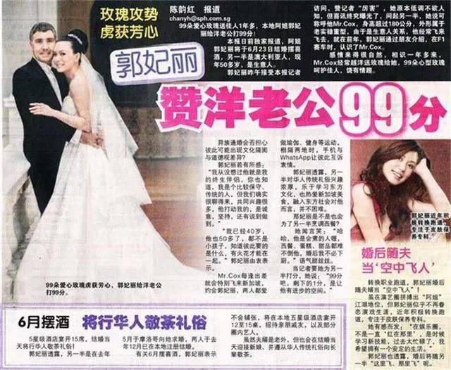郭妃丽的老公比她大10多岁,是一名澳洲帅哥,也算是成功的嫁入豪门。两个人在F1赛车比赛中相识,相恋一段时间后对方向她求婚,还特地用中文,虽然发音古怪,但一下子就击中了郭妃丽的心。