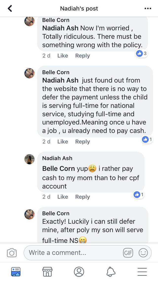 有网友表示,这项教育计划有问题,也有人表示,也宁愿用现金将学费还给自己的父母,而不是还款至他们的CPF账户。