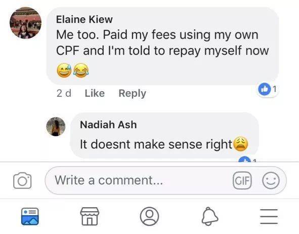也有网友说,她用自己的CPF支付了学费,现在也被告知必须偿还给自己。