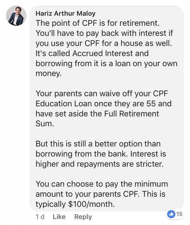 也有网友理性解释说,CPF的目的就是为了让新加坡人不用担心自己的退休生活。而且公积金教育计划比银行贷款还要好,毕竟银行贷款的利息更高,还款条件更严苛。