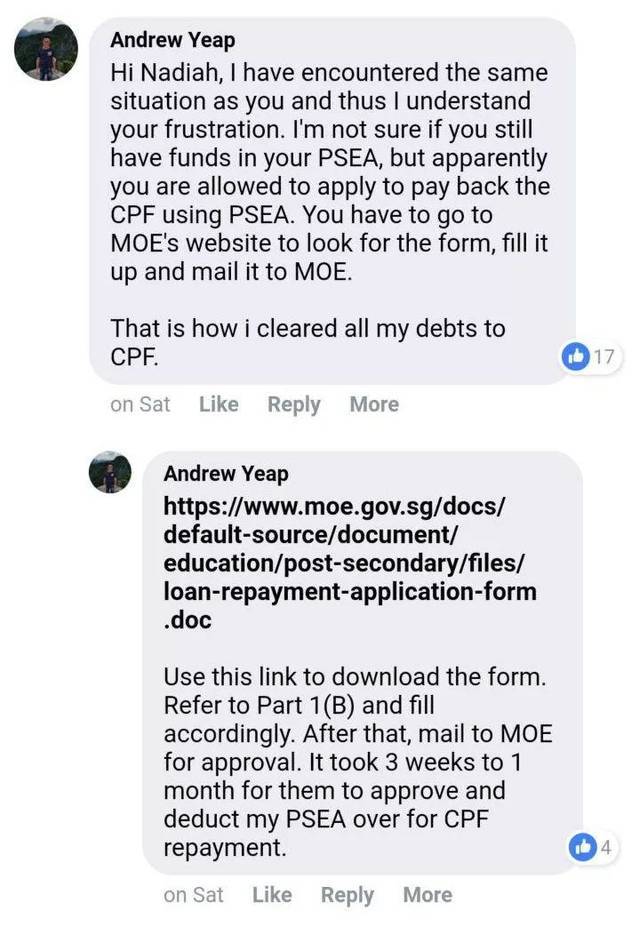 也有网友建议她使用Post-Secondary Education Account (PSEA)支付部分欠款。
