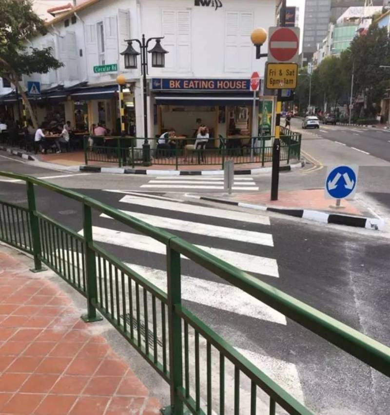最近,网上疯传一张照片。在新加坡沙球劳路一道的斑马线两端,竟然都设有栅栏!