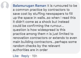另外也有网友不以为然,认为这反而确定了承包商经常将报纸塞入墙内的谣言。