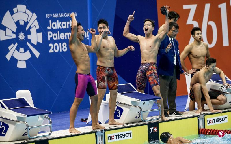 全国游泳训练中心总教练陈利裕解释:“我们把速度比较快的泳手放在前两棒,希望他们把优势拉开,让后面两棒的泳手压力没那么大。我要特别表扬陈永进的表现,他是我们的秘密武器,他没有让我们失望。”