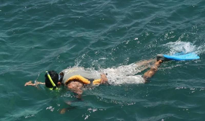 在清澈的海水中,畅游浮潜不要太爽!